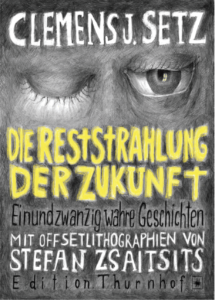 Clemens J. Setz, ein ganz Grosser der deutschsprachigen Gegenwartsliteratur, Büchner Preisträger 2021 und Stefan Zsaitsits, Künstler, Grafiker und Zeichner schufen in der Reihe der Edition Thurnhof mit „Die Reststrahlung der Zukunft – Einundzwanzig wahre Geschichten“ ein Buchkunstwerk, das mein Herz schneller schlagen lässt. Literarische Miniaturen erzählt mit Schalk und der Überzeugung, dass Literatur auch ein Kampf gegen die Bedeutungslosigkeit ist, gepaart mit messerscharfen Illustrationen, gekonnt in Szene gesetzt, weit mehr als die Bebilderung dessen, was Setz inszeniert.