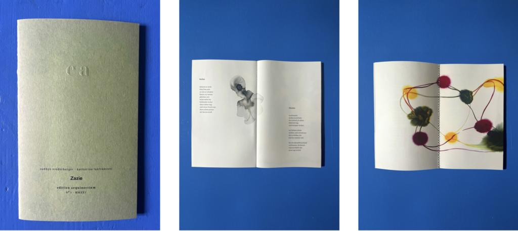 Das dritte Heft, erschienen zur Tag- und Nachtgleiche im Herbst 2025, enthält neue Gedichte von Katharina Lanfranconi sowie einen durch das Heft fliessenden Farbrausch. Tuschearbeiten, die Sadhyo Niederberger aus Aarau speziell für die Edition geschaffen hat. Text und Bilder durchdringen sich, spiegeln sich wider und setzen Kontrapunkte.