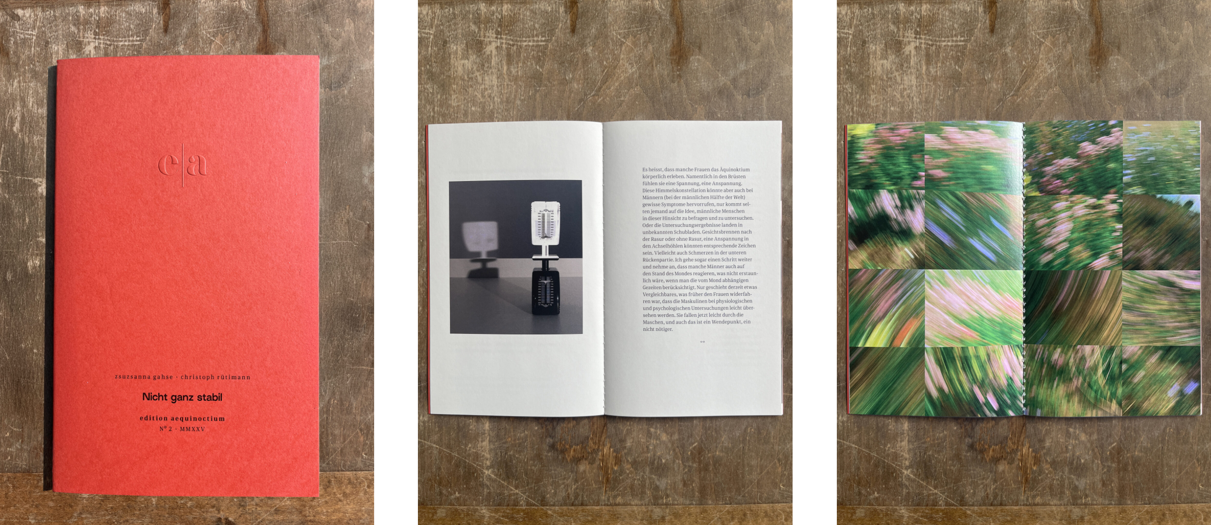 Im Frühling 2025 erschien «Nicht ganz stabil», ein Text von Zsuzsanna Gahse (Gewinnerin des Schweizer Grand Prix Literatur) und Fotografien des Künstlers Christoph Rütimann. Ein kongeniales Paar! Betrachtungen über den Mittelpunkt und die Wölbungen darüber.